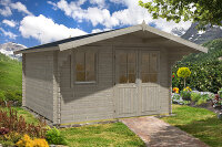 Das Holz unserer Gartenhäuser ist im Standard naturbelassen.